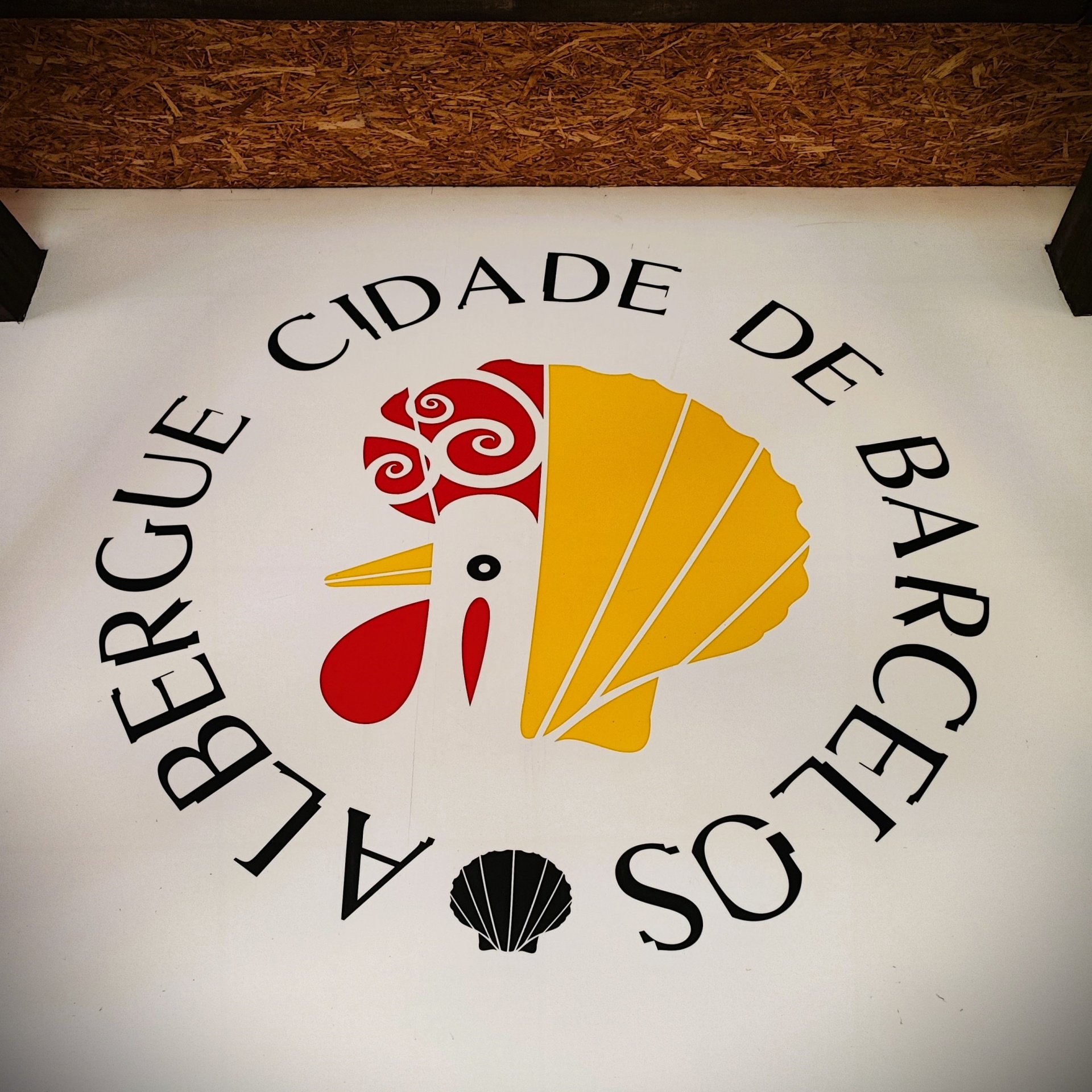 O símbolo/logótipo do Albergue Cidade de Barcelos é constituído por representações de uma vieira e de um galo, simbolizando a ligação da Associação e Albergue ao Caminho de Santiago (vieira) e à cidade de Barcelos (Galo de Barcelos). Apresenta, também, a designação “Albergue Cidade de Barcelos”.