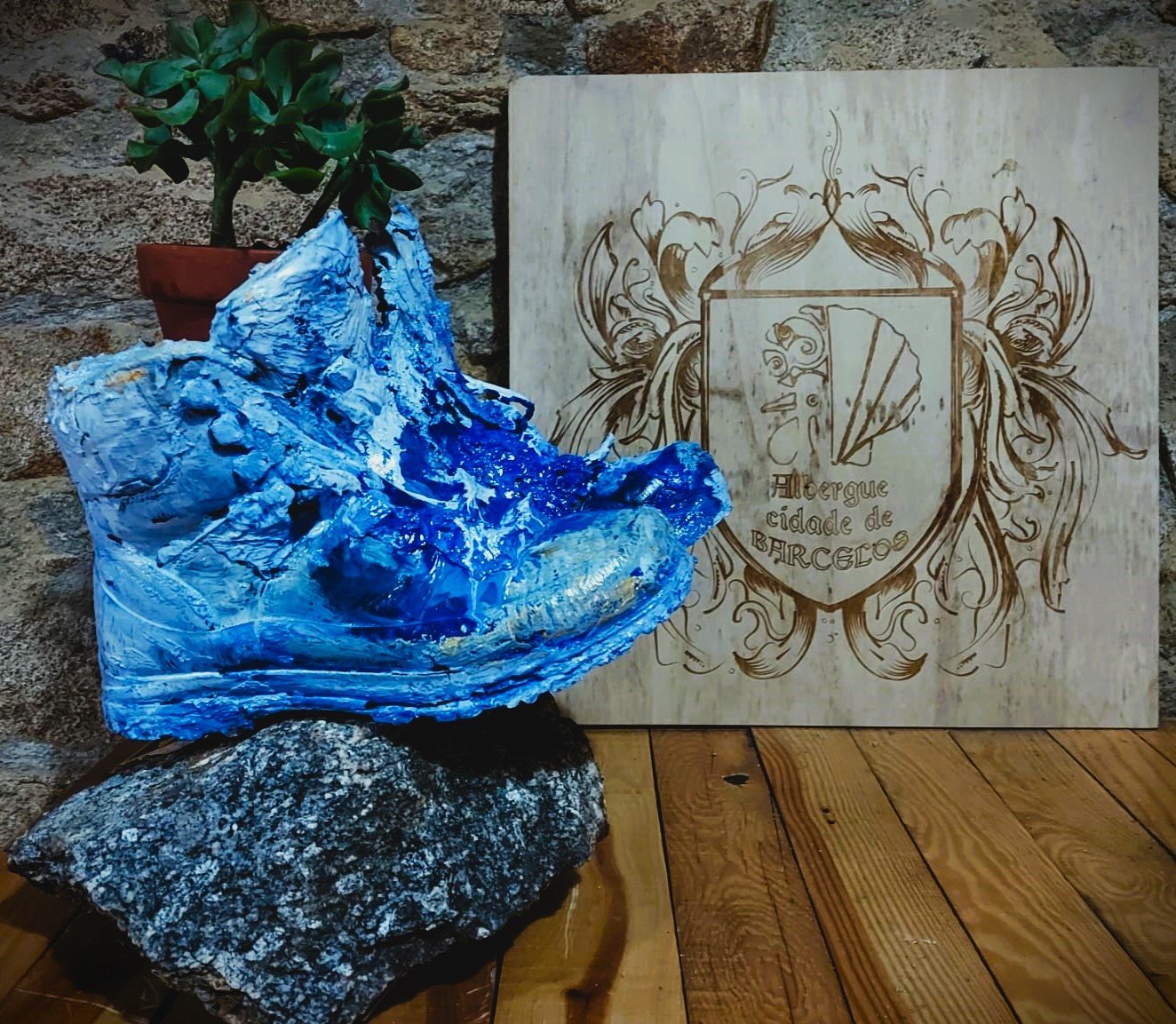 No Dia do Peregrino - 13 de outubro de 2022 - a nossa Associação foi brindada por um trabalho de Filipe Costa (associado da Associação ACB - Albergue Cidade de Barcelos): umas botas "velhas" deixadas por "um de nós" ficam, assim, eternizadas no Albergue. Nem sempre o Caminho é fácil, mas da adversidade floresce Vida e Mudança! E, desta forma, temos sempre um Bom Caminho!