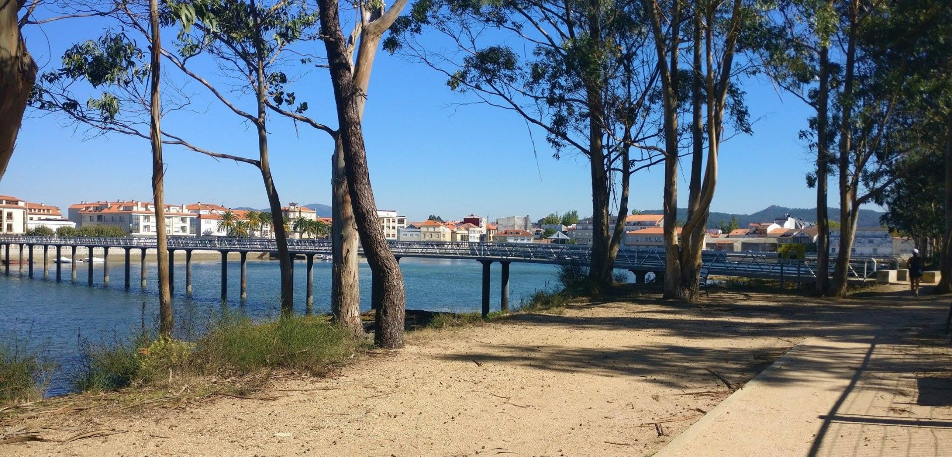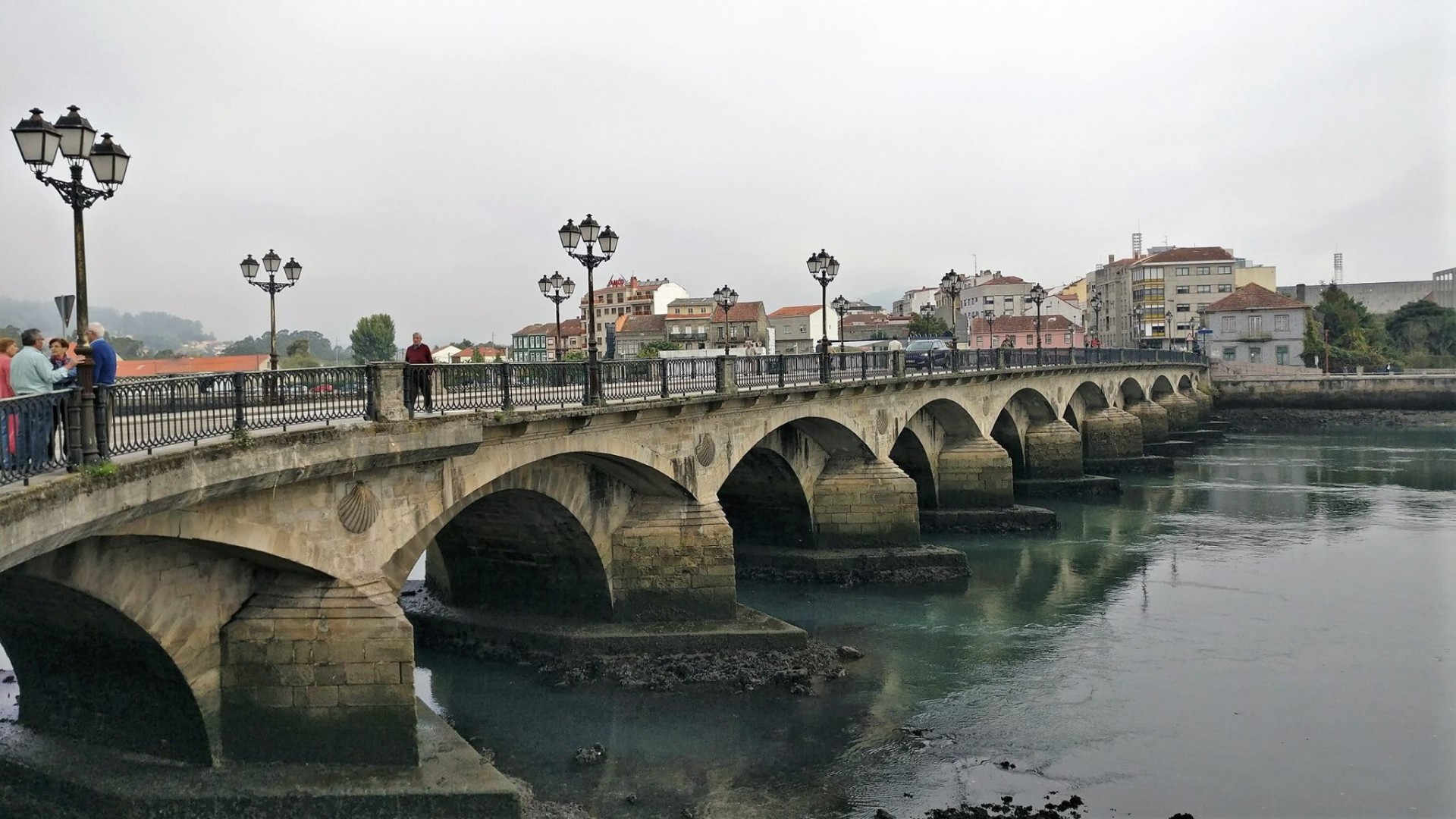 A saída da cidade de Pontevedra, depois de passar por vários cafés e/ou restaurantes, é efetuada pela ponte sobre o Rio Lérez.