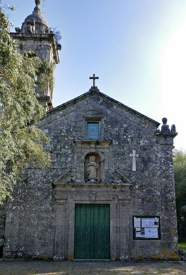 After 2.5 km of side walking of the road that leads to Vila Nova de Arousa (PO300), the Camino leads us, again, to a quiet walk among small villages. Just after the exit of the main road, there is a small chapel where it is common to have local volunteers providing information and wishing "Bom Camino" to all the Pilgrims who pass through.