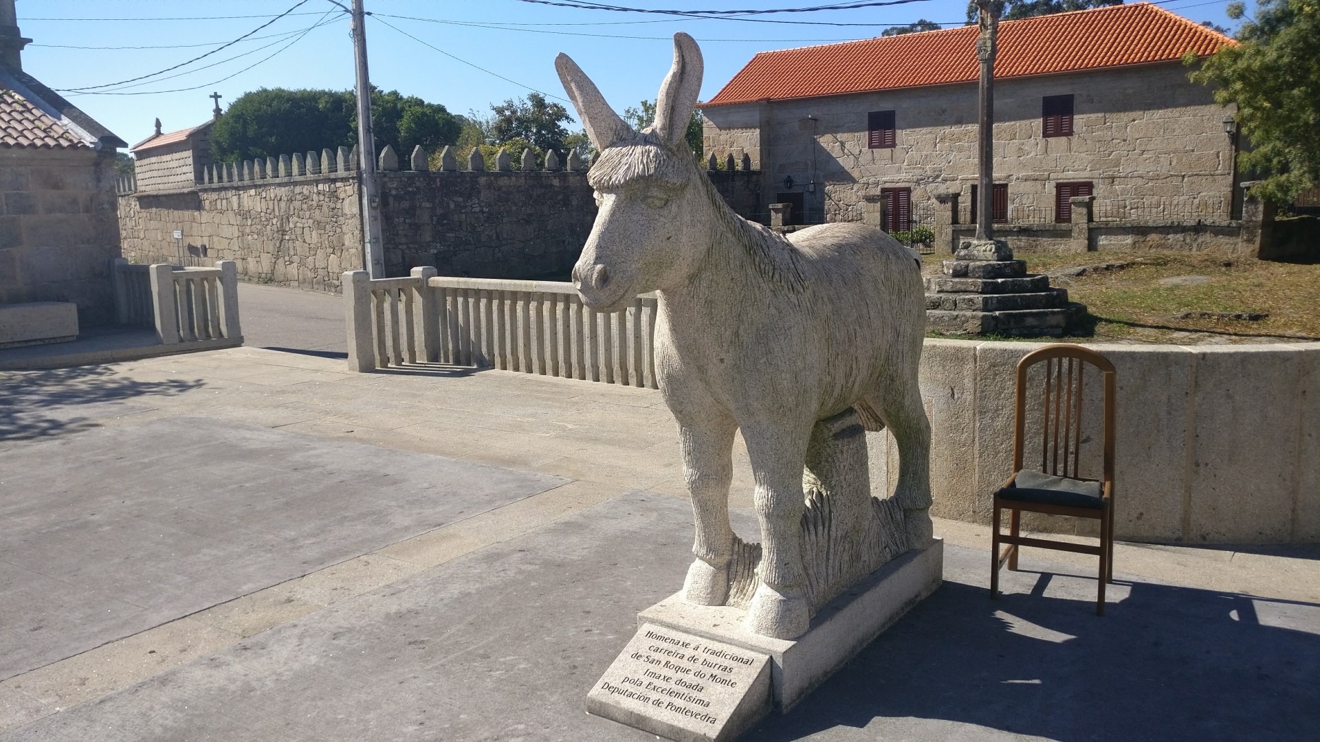 The first walking hour is carried out by the fantastic Ruta da Pedra e da Auga. This route, of enormous beauty, is traveled in a quiet way among windmills, vegetation and water courses. There are several stops made by the Pilgrims to enjoy all the surrounding Nature. During the Ruta, there is also a diversion that leads to the "Aldeia Labrega", a set of stone sculptures representative of the daily life of a typical Galician village.