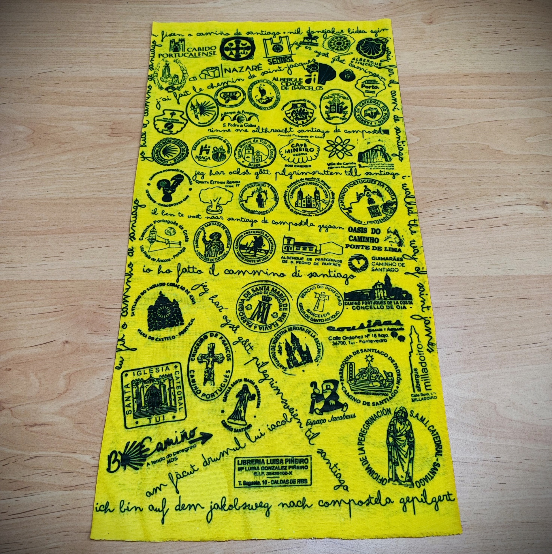 ![Lenço Caminho Português [Amarelo] Lenço amarelo com inscrições e selos pretos do Caminho de Santiago](https://cdn-shopkit.com/usercontent/credencialdoperegrino/media/images/c06f885-121245-img_20230207_120612.jpg)